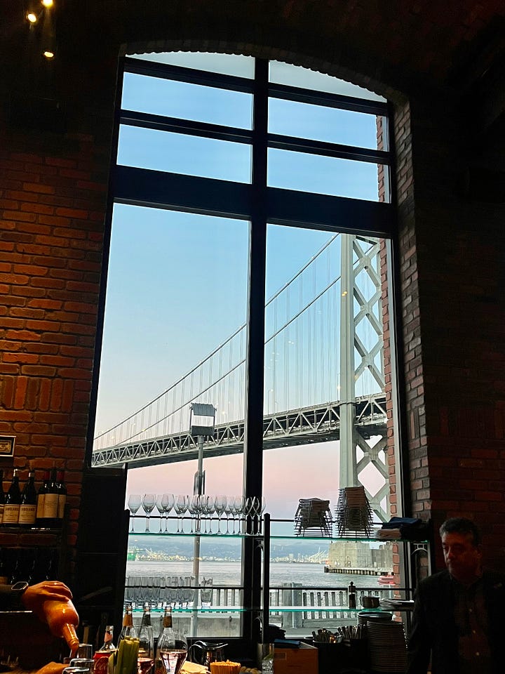 When I travel, I love to eat by myself. I mean I love to travel by myself for starters, but also when I travel for work, I like taking the opportunity to eat a meal or two on my own. It’s not necessarily better than eating in the company of friends, it’s just a different experience altogether, and I like mixing it up. One recent such opportunity cropped up in San Francisco, where I took myself out to dinner at the bayfront Waterbar for a steak dinner. I had 2 glasses of wine and a sherry (which the bartender gave me, along with my dessert), a perfect steak, and some vegetable situation that I don’t totally recall. It doesn’t matter because I was just staring out the window the whole time.