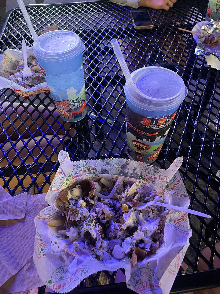 I love Fair Food of almost any kind–I have the North Carolina State Fair to blame for that, they have the best food, I will never forget the Methodists’ ham biscuits. Although the Nashville Fair didn’t have quite as much to offer, it came through with something called Gyro Fries, which was simply: a pile of fries covered with gyro meat, tzatziki sauce, and feta. I’m not lying to you when I say it was one of the tastiest things I’ve ever eaten. It was one of those food items where you go nonverbal after bite #1, and I did.